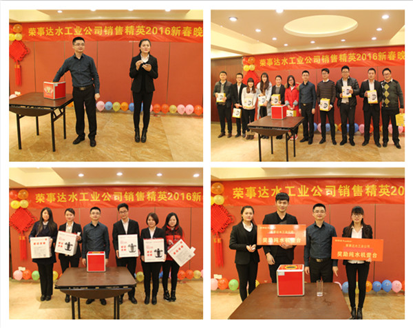 晚上六時(shí),全體銷售精英參加了晚宴,王總在晚宴上作重要發(fā)言,他指出,2015年,在各部門的共同協(xié)作之下,榮事達(dá)凈水機(jī)網(wǎng)點(diǎn)覆蓋率穩(wěn)步提升,3T模式在終端引發(fā)銷售狂潮,事業(yè)部銷售業(yè)績(jī)?cè)賱?chuàng)新高。他希望在2016年,廣大銷售精英將榮事達(dá)優(yōu)質(zhì)的產(chǎn)品、服務(wù)與終端營(yíng)銷有機(jī)結(jié)合,奮勇爭(zhēng)先、昂首闊步刷新銷售戰(zhàn)績(jī)。