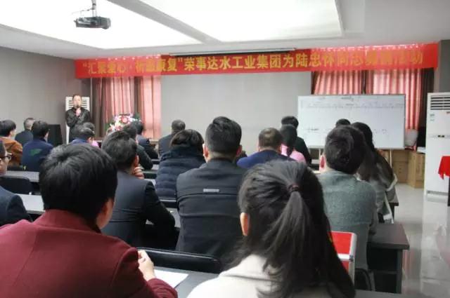 2017年11月18日,榮事達(dá)水工業(yè)集團(tuán)舉辦了“匯聚愛心,祈愿康復(fù)”愛心募捐活動,為集團(tuán)患病員工陸忠懷籌集善款。 活動由黨支部牽頭倡議舉行,在榮事達(dá)智能家電研發(fā)中心三樓會議室展開。黨支部劉書記就此次捐款活動發(fā)表簡短講話,說明了陸忠懷同志的病情及其家庭的艱難處境,并代表全體員工表達(dá)了對陸忠懷同事及其家屬的慰問和關(guān)懷。隨后集團(tuán)各公司、各事業(yè)部、各部門代表依次上臺捐獻(xiàn)善款。陸忠懷同事家屬對各位同事的傾情相助一再表示感謝。