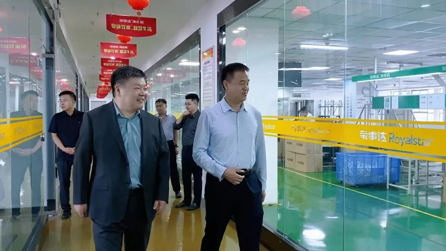領導一行先后參觀榮事達家用凈水生產車間,七大品控實驗室,智慧水世界體驗展廳,了解集團的發展歷程,公益事業及黨建引領下的企業文化等。