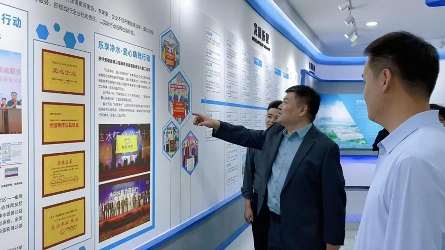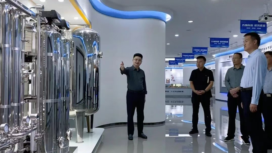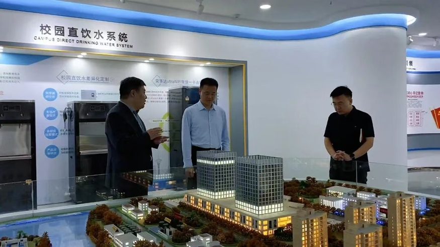 領導一行參觀了解集團全屋智慧凈水、管道直飲水、校園智慧飲水、單位/工廠直飲水等項目,實現凈水行業全領域項目發展。