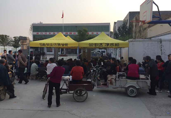推廣活動(dòng)中,代理商依據(jù)農(nóng)村和城區(qū)市場的不同需求,從當(dāng)?shù)毓┧绞胶退|(zhì)狀況出發(fā),針對(duì)性地推出了區(qū)域定制產(chǎn)品。在農(nóng)村,具備自吸功能,抽水、增壓可一步達(dá)成的紅梅純水機(jī)以及自吸式壁掛加熱RO一體機(jī)被廣大村民搶購一空;在城市小區(qū),美觀時(shí)尚、性能優(yōu)異的幽蘭雙膜純水機(jī),昭華箱式純水機(jī),香檳金款壁掛加熱RO一體機(jī)等產(chǎn)品備受消費(fèi)者親睞。