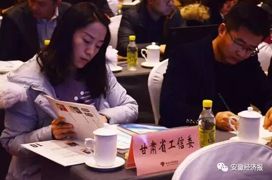 與會代表閱讀由安徽省經(jīng)信委編輯的《兩化融合在行動》一書(安徽經(jīng)濟報社出版)