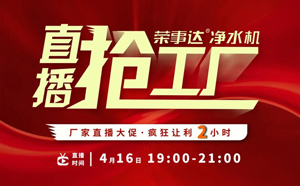 瞄準網絡化營銷聚變新格局,榮事達水工業集團以創新思維持續引領凈水銷售模式升級,借力現場感與代入感超強的新媒體直播平臺,貫通線上線下渠道,助力經銷商快速銷售。4月16日,榮事達2020年硬核大動作——“榮事達凈水機?直播搶工廠”網絡直播營銷活動強勢落地,贏戰市場!