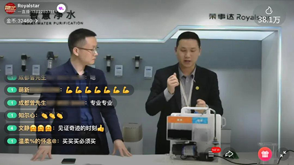 專業的技術講解后,榮事達為觀眾帶來了箱體LED純水機、300G智能反滲透凈水機、即熱飲水機、智能凈飲一體機4款備受市場歡迎的“明星”產品,并詳細介紹了濾芯元件、產品功能、售后保障等各方面的獨特優勢。同時,現場更是發布了廠家直供優惠、直播間超低折扣、預定讓利以及多重禮品等超級福利,不斷掀起一波波搶購熱潮,互動熱情持續飆升!