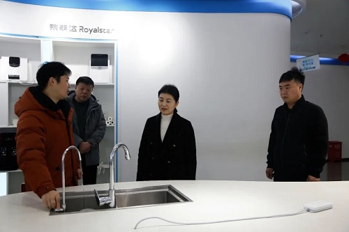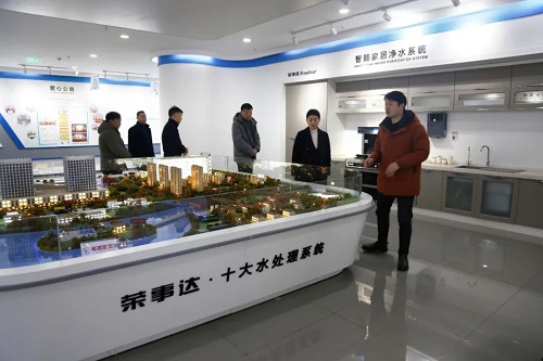 領導一行先后參觀了榮事達智能家用凈水生產車間和智慧水世界展廳。了解榮事達企業綜合實力及十大水處理系統具體發展狀況。