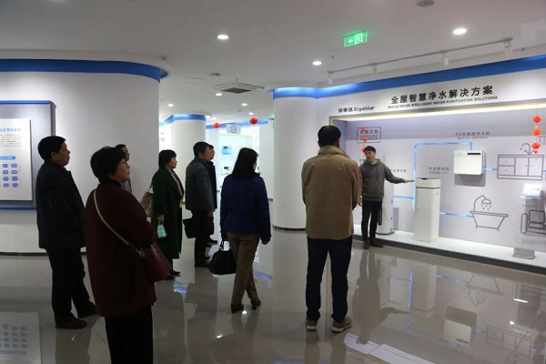 領(lǐng)導(dǎo)一行深入榮事達(dá)智慧水世界展廳,聽取了講解員對(duì)榮事達(dá)水工業(yè)發(fā)展歷程、榮譽(yù)成就、公益行動(dòng)及黨建引領(lǐng)的全面介紹。
