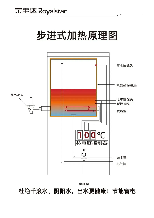設備采用了RO反滲透技術、多級凈化等工藝,有效去除了水中的泥沙、鐵銹、重金屬、余氯等有害物質(zhì),確保水質(zhì)干凈、安全。同時,步進式加熱設計避免了“陰陽水”的產(chǎn)生,保證了連續(xù)供應開水的品質(zhì)。