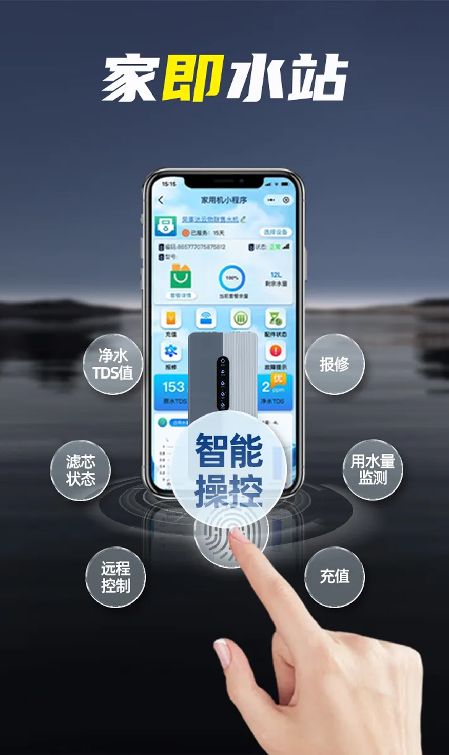 掃碼激活專屬小程序,水質TDS值、濾芯壽命、用水量等關鍵數據實時躍然屏上。用戶抬眼即見安心,用水盡在掌握。