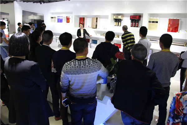 隨后,榮事達(dá)渠道開發(fā)部董部長對新品功能、市場定位進(jìn)行了詳盡解析。新款純水機(jī)R8采用RO反滲透技術(shù)及五級過濾系統(tǒng),融智能顯示、自動化沖洗、防漏水設(shè)計于一體;R8s具備雙膜雙出水、濾芯更換智能提醒等多重功能,用戶使用更節(jié)能、實用、省錢。新款飲水機(jī)采用厚膜加熱管原理,三秒即熱,并可實現(xiàn)多檔水溫水量調(diào)節(jié),家庭飲水更為方便。新品充分結(jié)合市場需求,種類齊全,既有可攻克農(nóng)村地區(qū)水壓不足不穩(wěn)狀況的自吸增壓凈水機(jī),也有能滿足城市居民追求健康時尚生活的高端機(jī)型。